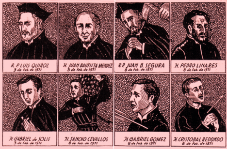 Fr. Segura received word that Don Luis had abandoned his Christian faith in favor of polygamy and dissolute living.  Fr. Segura sent messages to Don Luis petitioning his return to the faith, all in vain.  At last, he decided to send three of his small band to the village to confront Don Luis personally.  Fr. Luis Quiros and Brothers Gabriel and Juan arrived at the village and were graciously welcomed.  They spoke with Don Luis, who gave his word to return to the mission the next day.  The party left the next day, February 4, 1571, to return to the mission.  Tragically, Don Luis and his warriors met them on the road and killed all three.